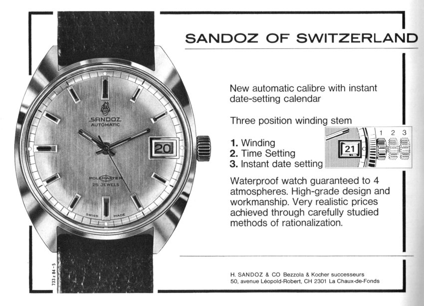 A cette occasion la société Sandoz a en effet changé de nom : en 1970, elle est devenue Compagnie des Montres Sandoz SA [14].