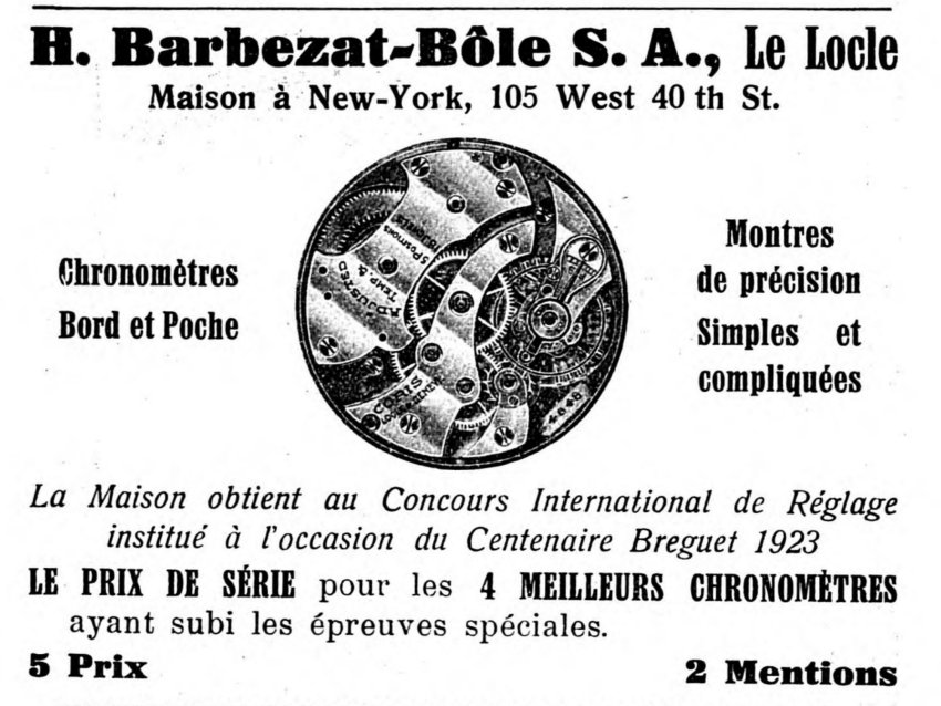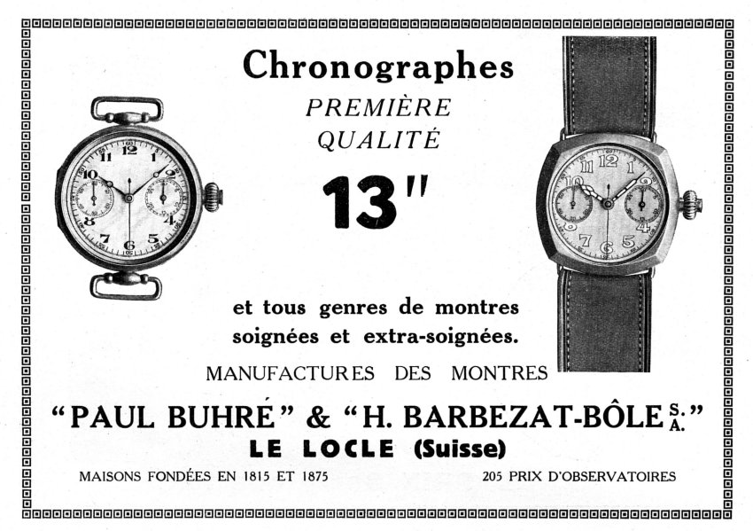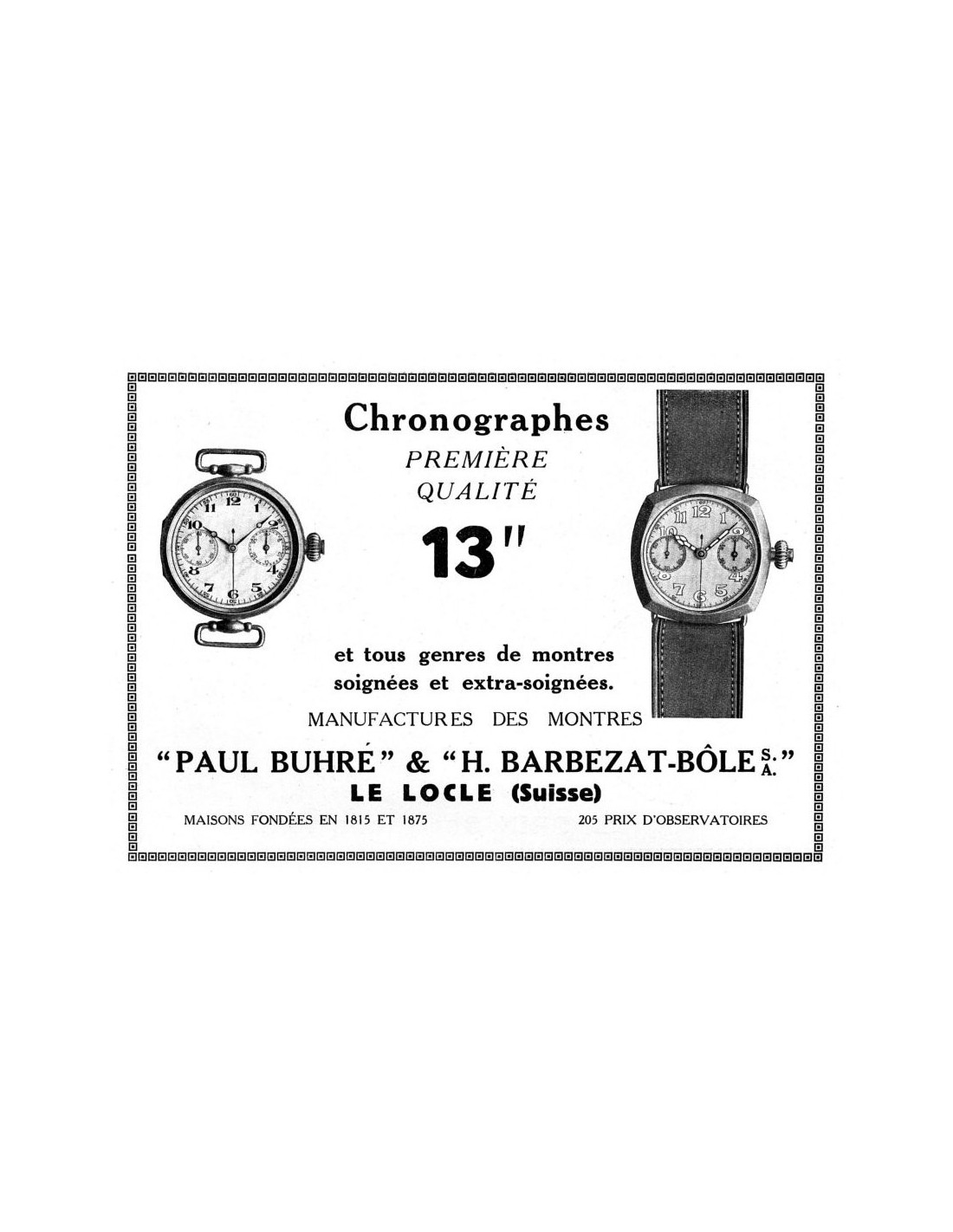 Barbezat-BôleLa maison Barbezat-Bôle au Locle, à ne pas confondre avec Barbezat-Baillot à l’origine de la fabrique Le Phare, s’était spécialisée dans la belle montre de poche avec complications et automates. Elle a repris la maison Paul Buhré en 1928.