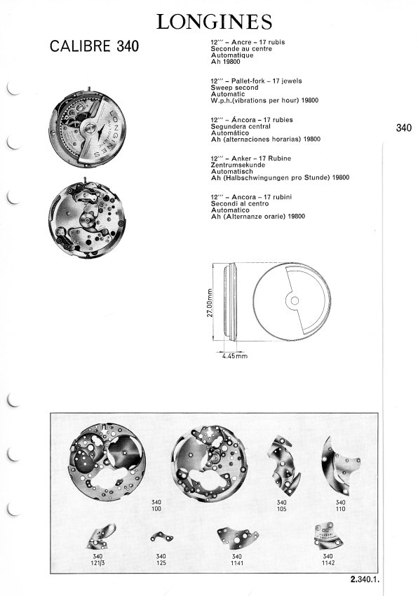 Catalogue des calibres Longines n°10 - 1967